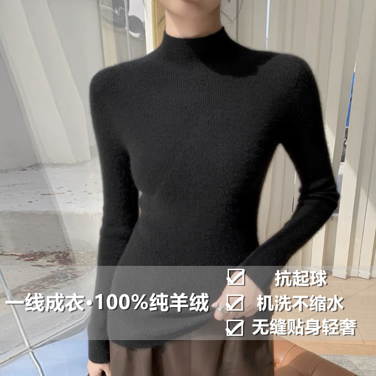 内搭毛衣秋冬打底衫 女半高领修身 鄂尔都市牧王一线成衣绵羊绒衫由