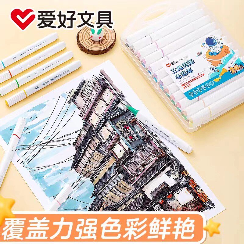 色丙烯马克笔 晨光食品级马克笔小学生儿童美术专用水彩笔无毒可水洗24色幼儿园水性双头彩色笔画画笔绘画套装