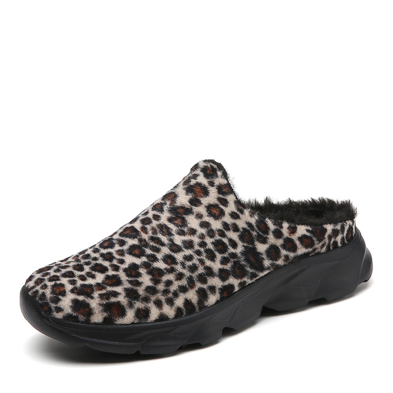 中年妈妈加绒包头毛毛鞋 豹纹棉拖鞋 女冬季 新款 室内室外无后跟棉鞋