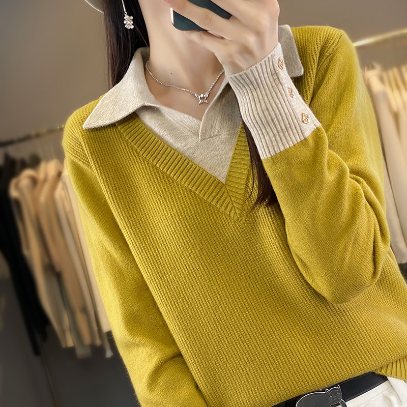 ⭐小红书推荐⭐假两件羊毛衫 女春季 POLO领拼色洋气打底毛衣套头宽松针织羊绒衫,所属毛针织衫分类,由淘宝网挑选推荐!小红书抖音网红同款!哪里有卖假两件羊毛衫 女春季 POLO领拼色洋气打底毛衣套头宽松针织羊绒衫和多少钱质量怎么样✅。