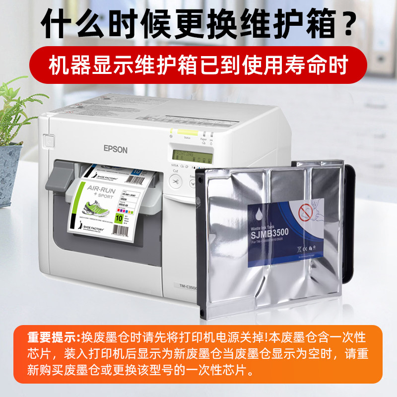 近墨者 C3520 C3500彩色标签打印机废墨盒C3510废墨收集盒维护箱 适用爱普生SJMB3500废墨仓EPSON