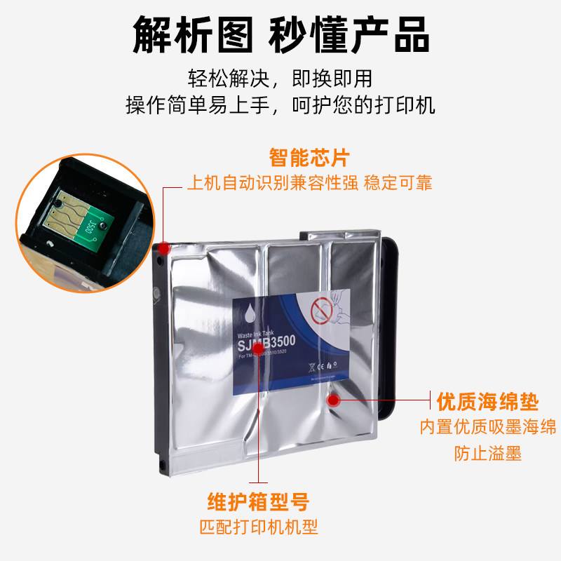 近墨者 C3520 C3500彩色标签打印机废墨盒C3510废墨收集盒维护箱 适用爱普生SJMB3500废墨仓EPSON由