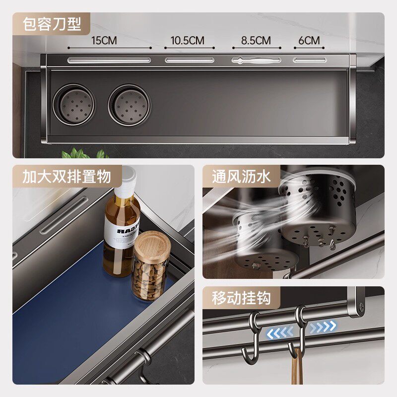 为您提供商品厨房置物架304不锈钢家用免打孔壁挂调料筷子刀架用品大全收纳架的详细介绍,