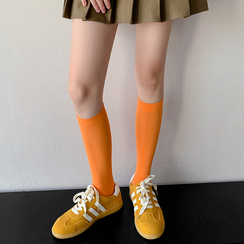 y2k蓝色中筒袜多巴胺绿色弹力堆堆袜 彩色天鹅绒小腿袜女春秋薄款