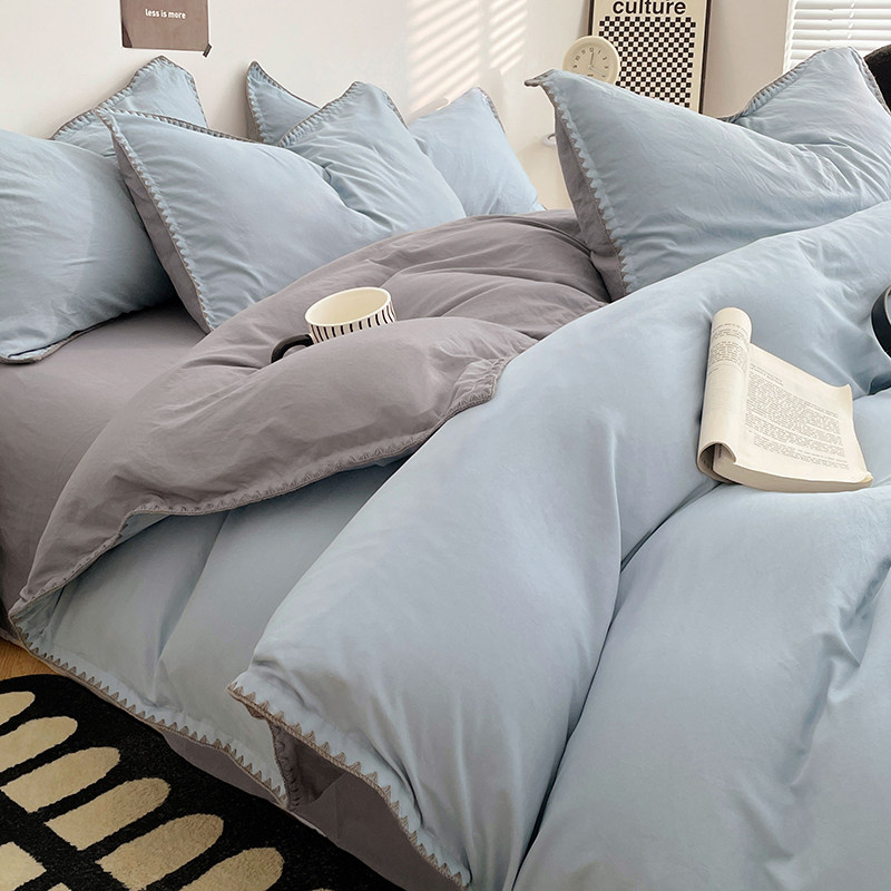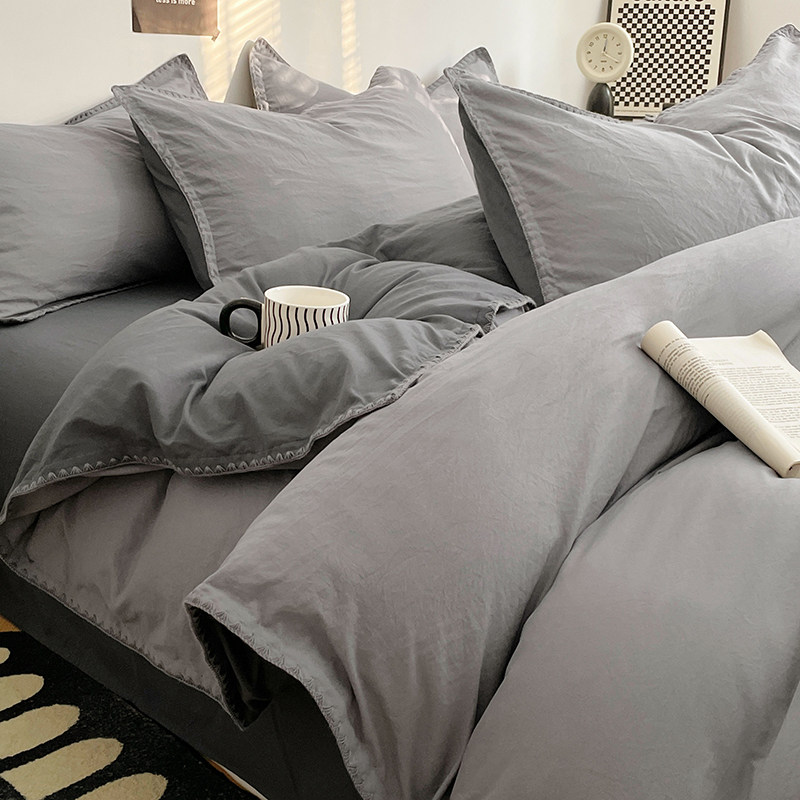 床单被套 简约砂洗天丝刺绣四件套多色床品套件凉感夏季