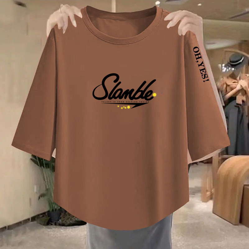 休闲t恤半袖 2025新款 洋气圆领简约上衣宽松爆款 时尚 韩版 女夏装由