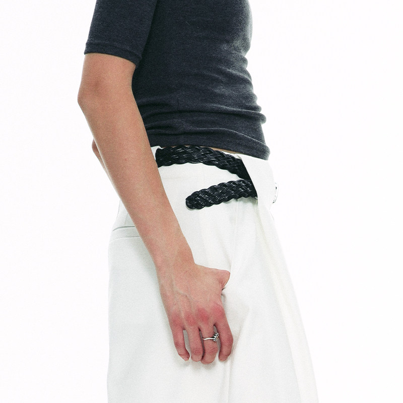 SINGLE 2025SS夏季 编织牛皮腰带简约百搭装 饰皮带女 MOMENT