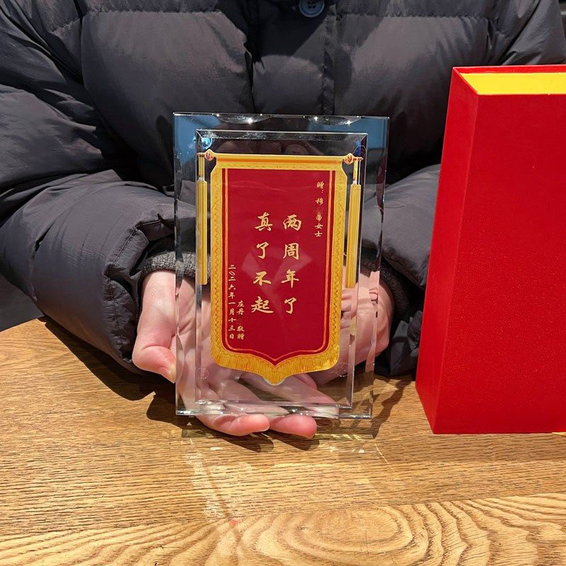 创意水晶锦旗定制奖杯小摆台情侣一周年纪念礼物送女朋友生日礼品