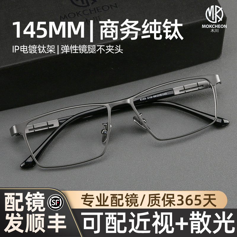 木川145mm商务纯钛眼镜男款 眼睛框 近视方框弹性镜腿可配度数男士