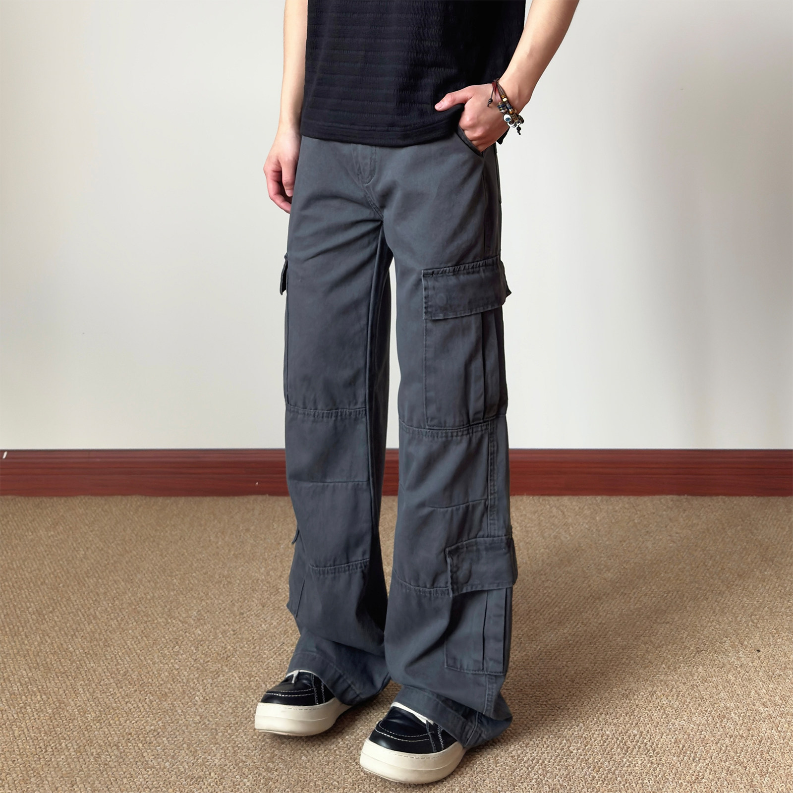 布老哥Blog美式 裤 宽松立体vibe风微喇直筒裤 子K745 复古多口袋工装由