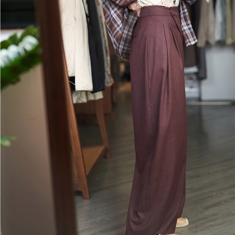 斐雪 适宜JIN口面料桑蚕丝混纺腰部打褶真丝阔腿裤 高级感西裤 四季