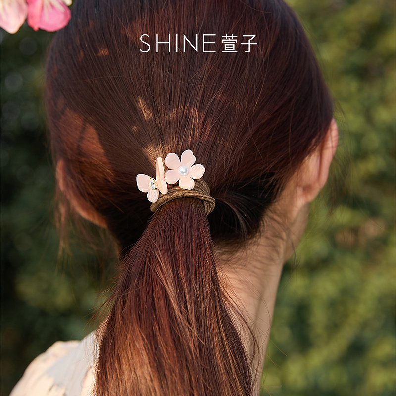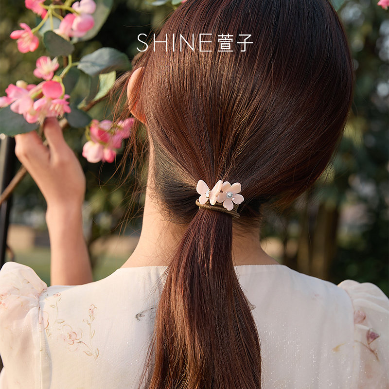 SHINE萱子饰品海棠系列花朵蝴蝶珍珠皮筋发圈简约百搭早春配色由