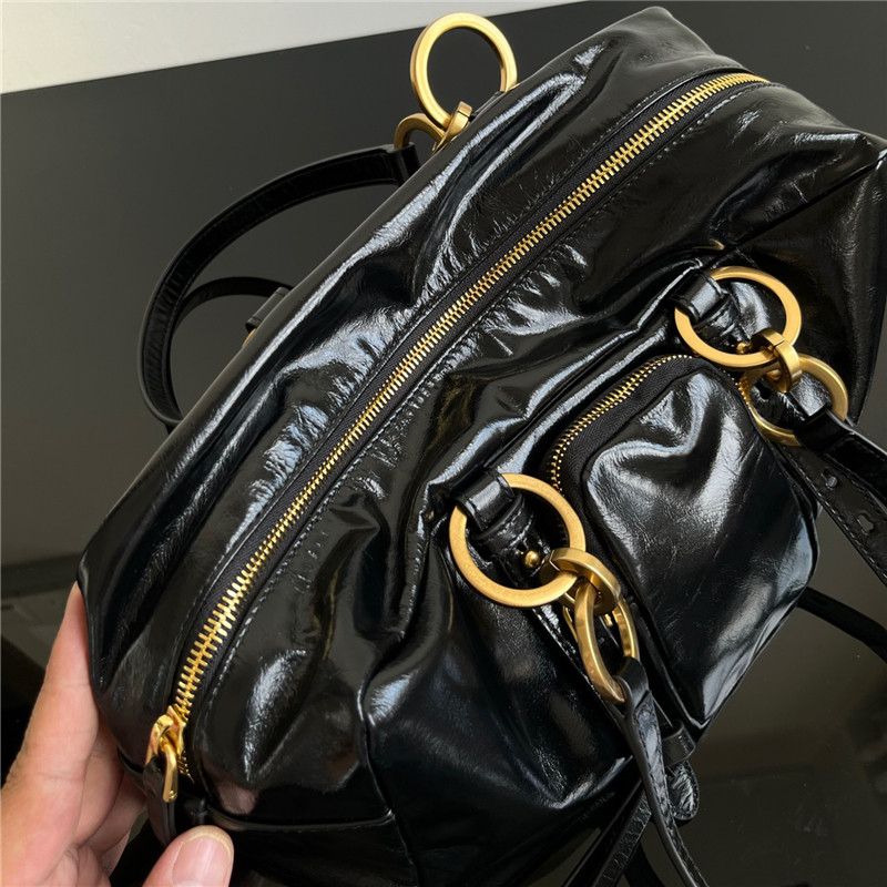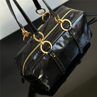 纯原厂 油蜡皮手提包女托特保龄球包单肩腋下包波士顿枕头包 外贸由