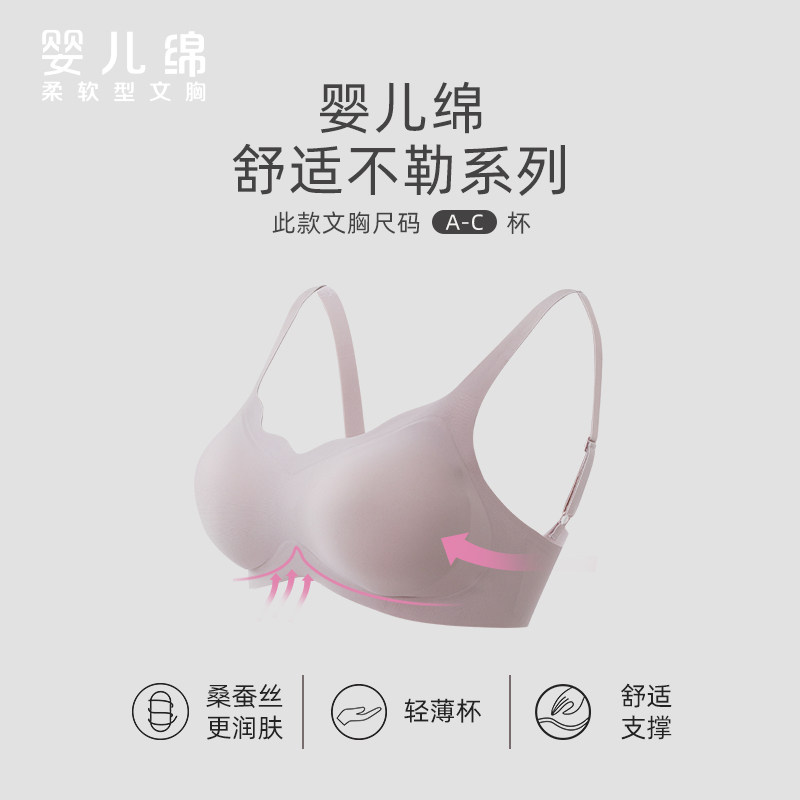 红豆居家婴儿绵收副乳内衣胸大显小防下垂柔软轻薄透气桑蚕丝文胸由