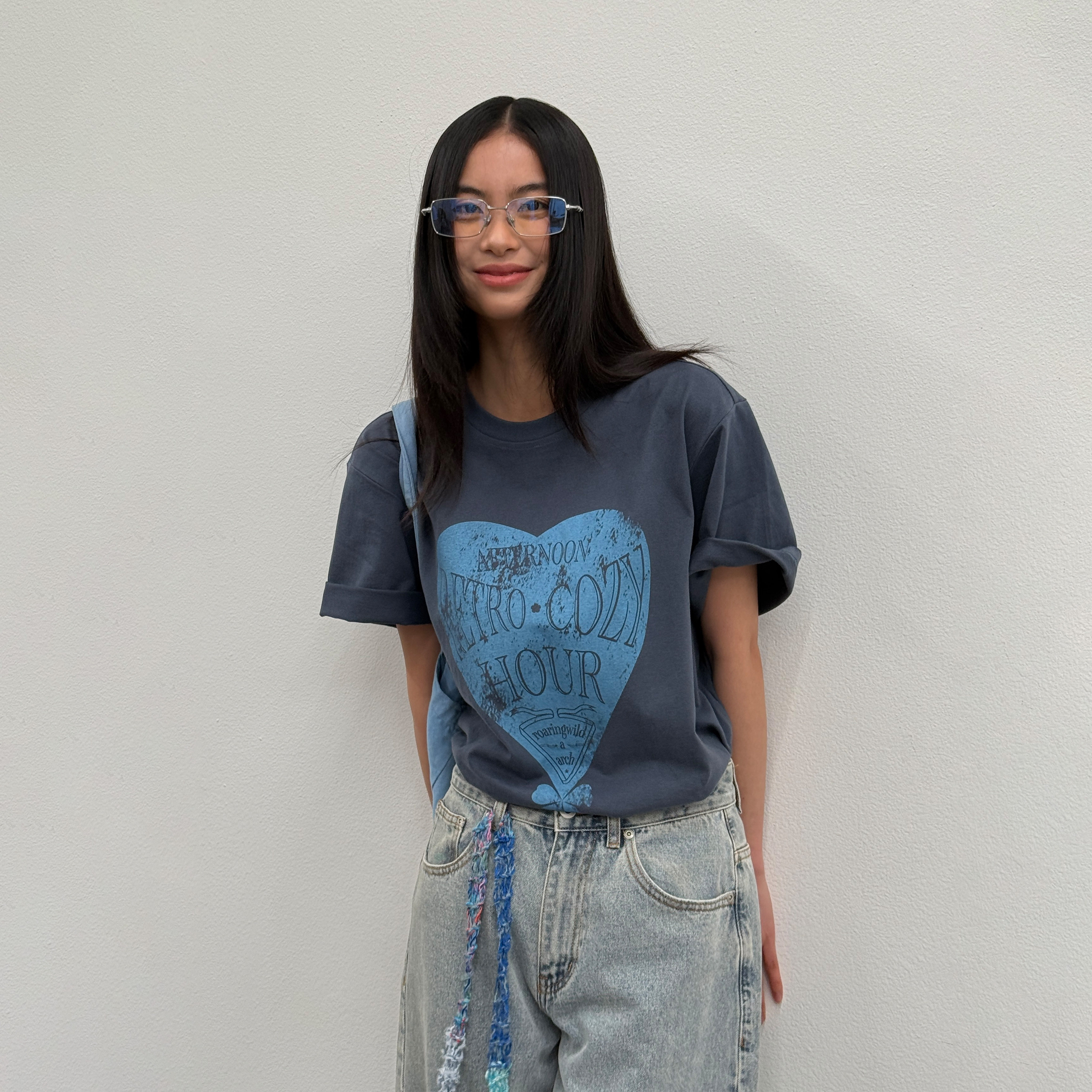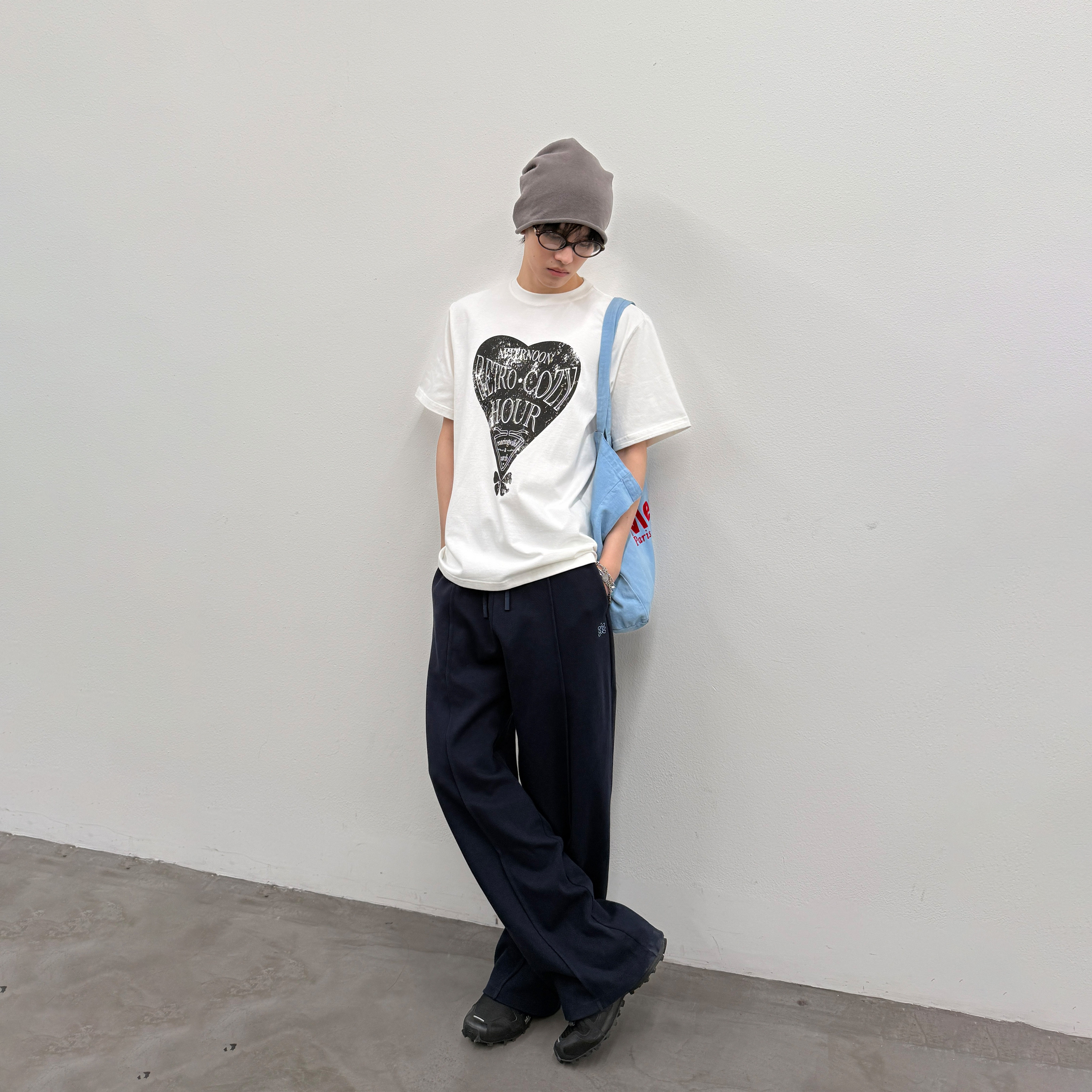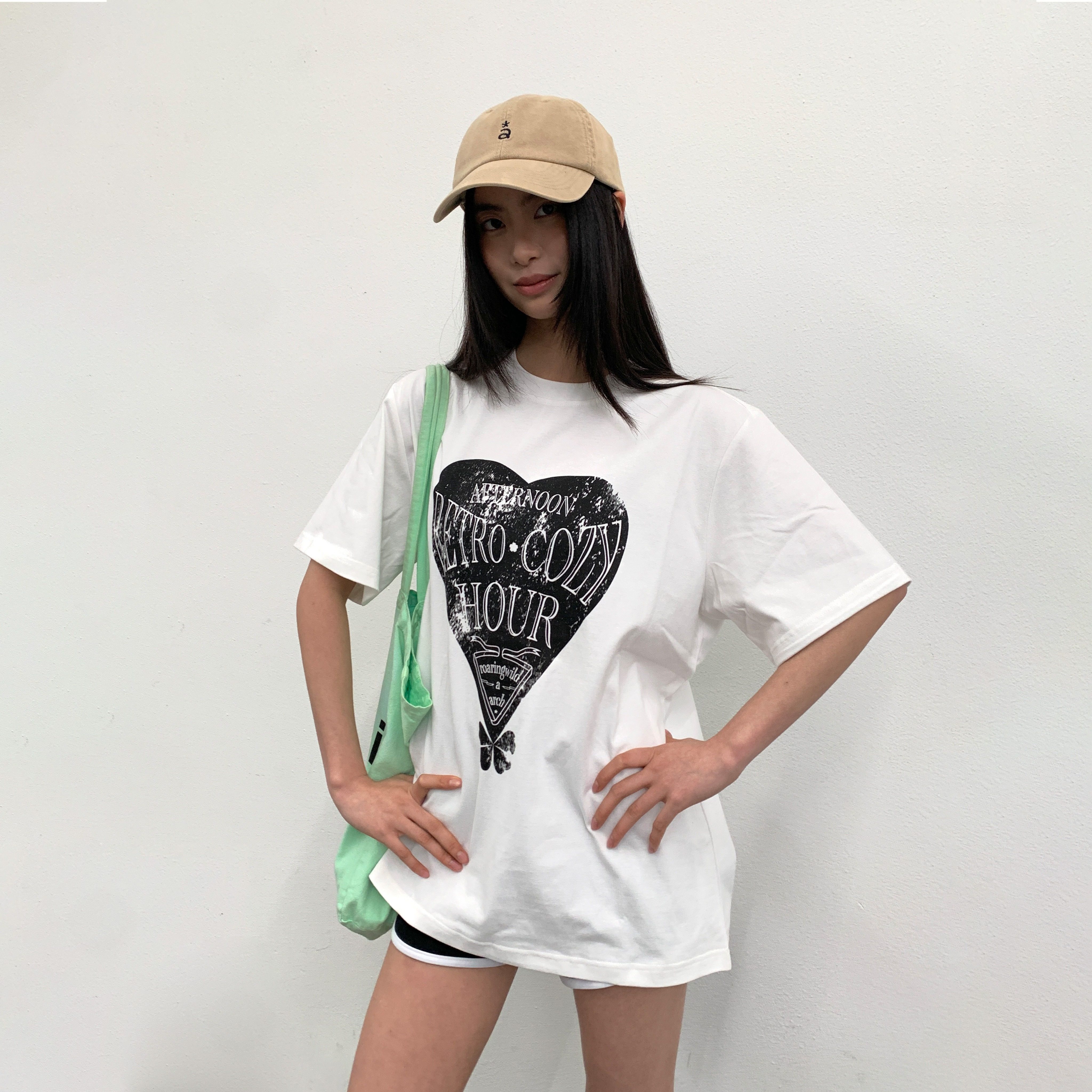 LA短袖 宽松百搭印花上衣白色11 T恤男女情侣落肩袖
