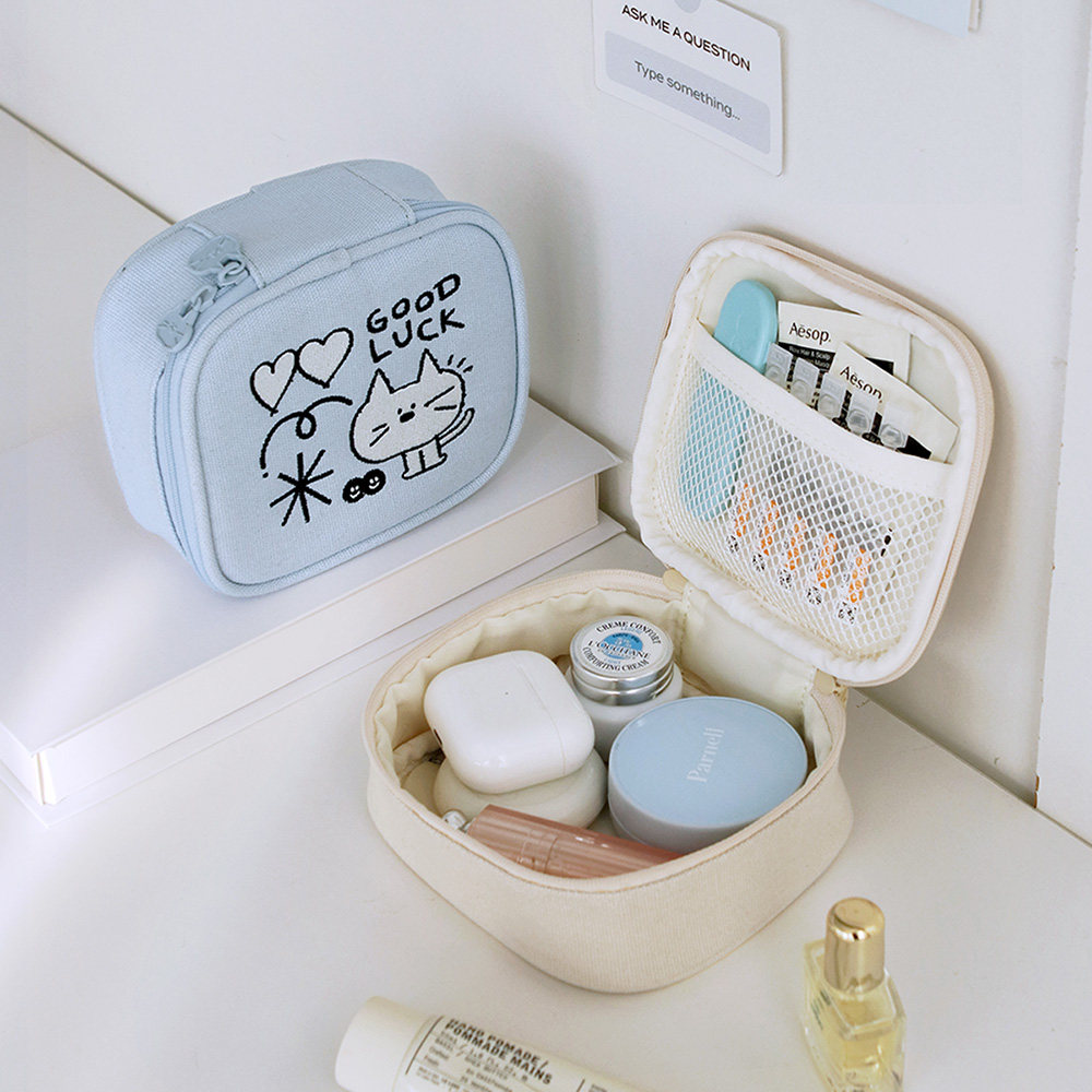 韩国ICONIC可爱卡通刺绣猫咪化妆包杂物收纳包拉链随身包便携ins