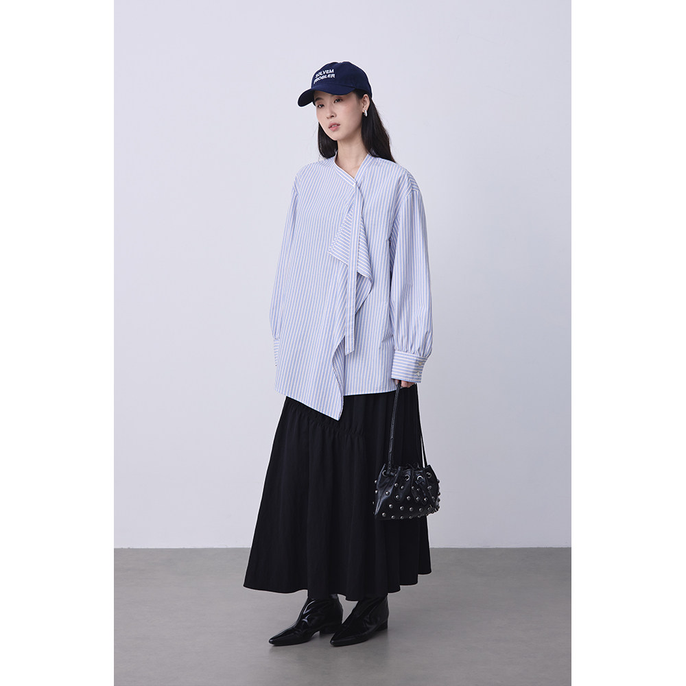 为您提供商品CAREMIND黑色肌理感褶皱a字高腰半身裙气质简约宽松显瘦长裙子夏的详细介绍,