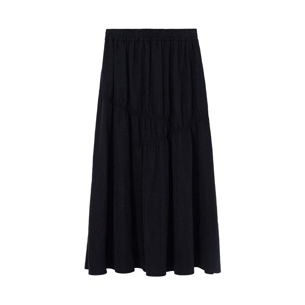 CAREMIND黑色肌理感褶皱a字高腰半身裙气质简约宽松显瘦长裙子夏