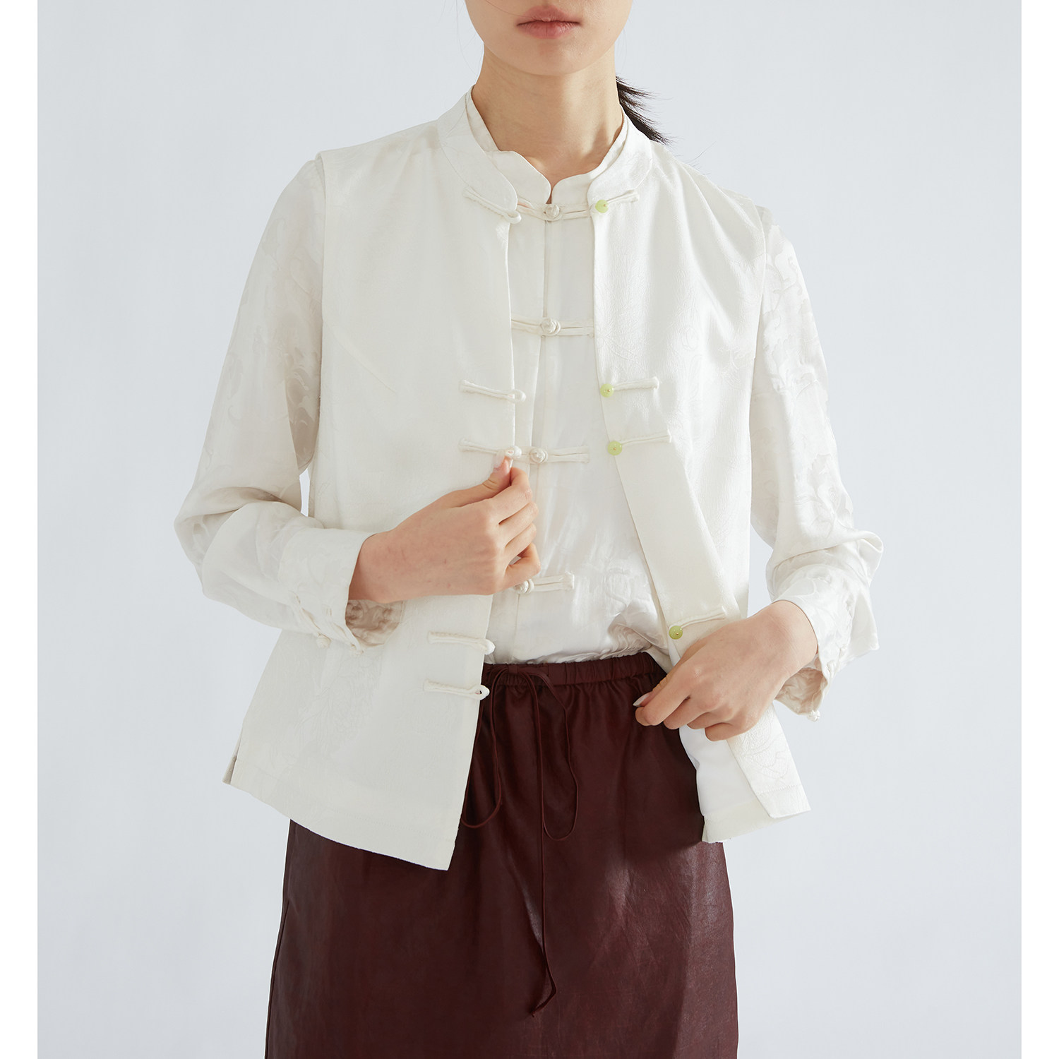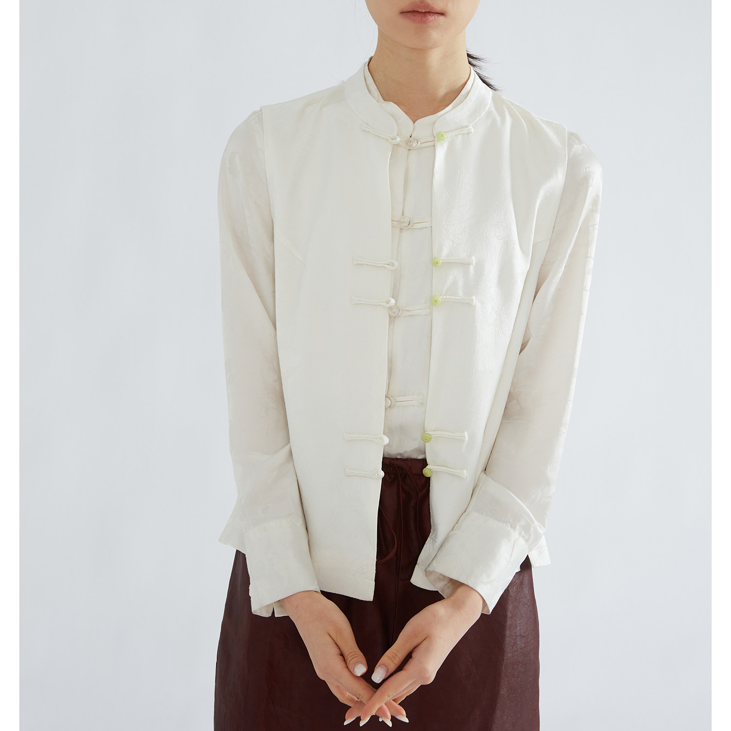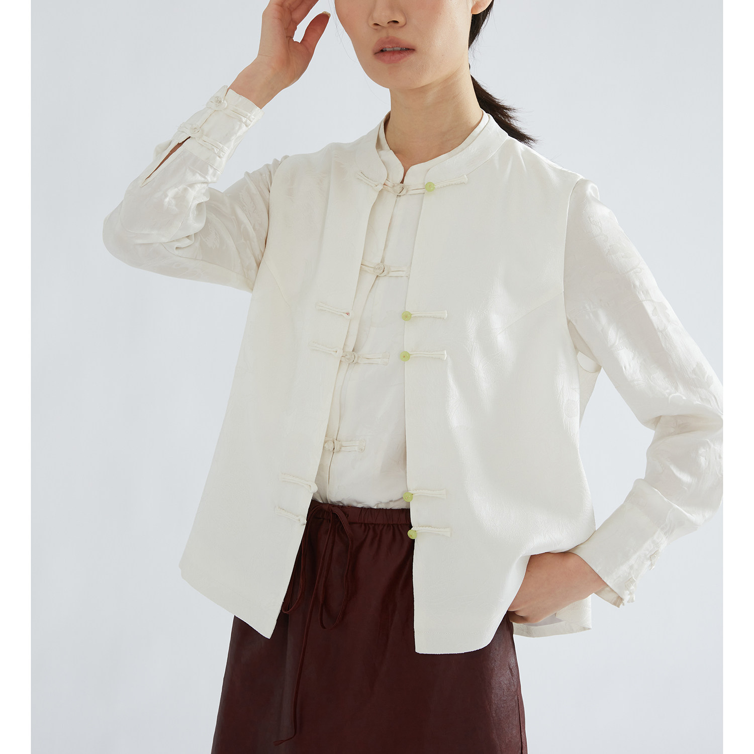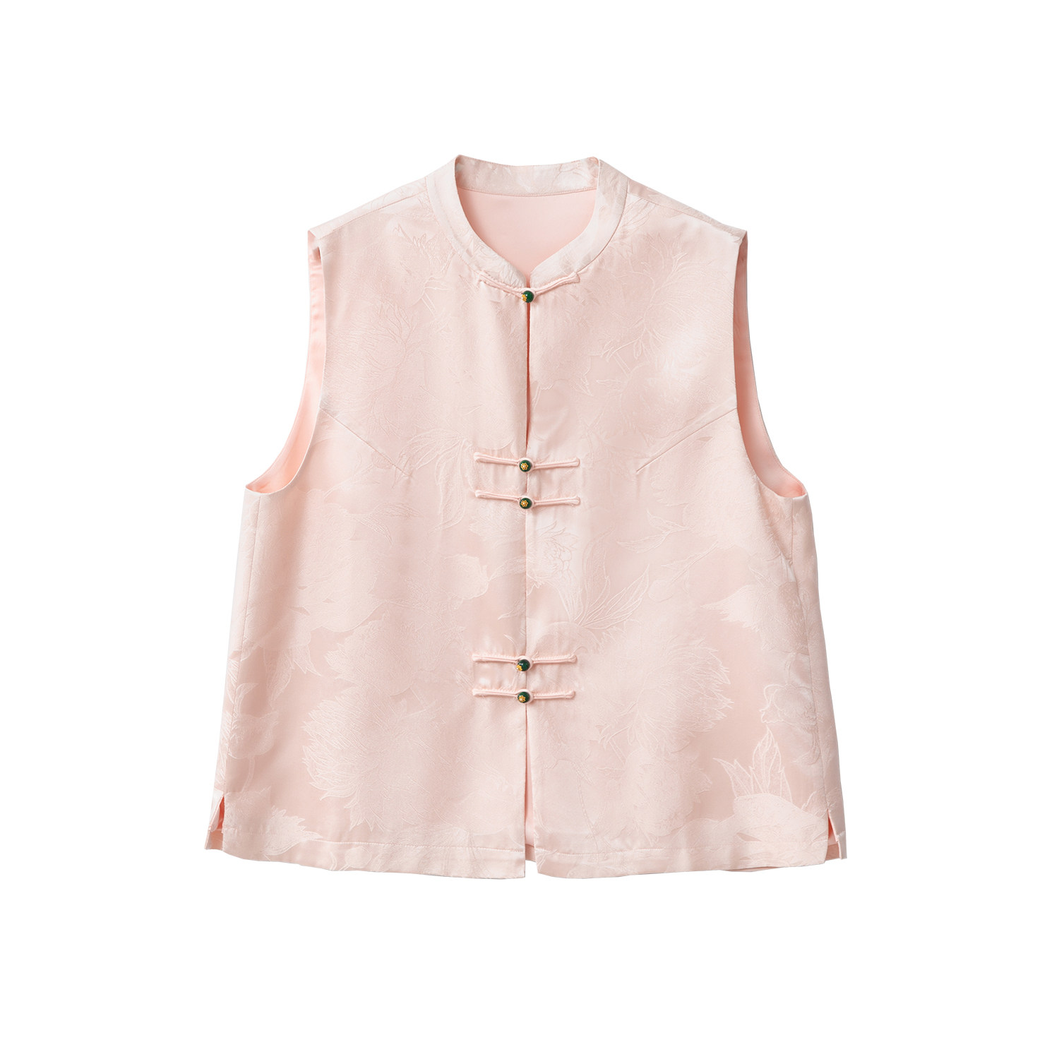 一丝牵 盘扣宽松马夹 100%桑蚕丝缎面提花立领真丝马甲国风新中式