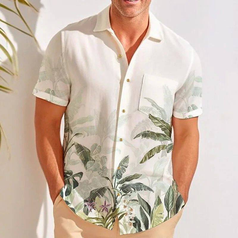 夏季 衬衫 男韩版 潮流宽松夏威夷复古痞帅海边花衬衣潮 港风日系短袖