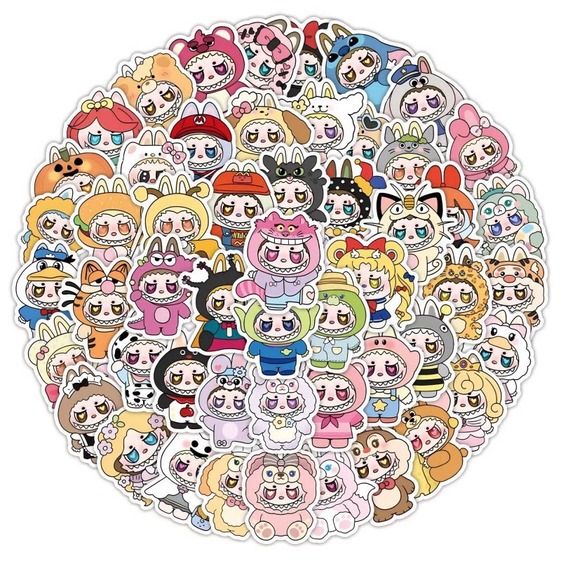 饰手机壳iPad行李箱水杯DIY贴画 50张labubu拉布布贴纸可爱玩偶装
