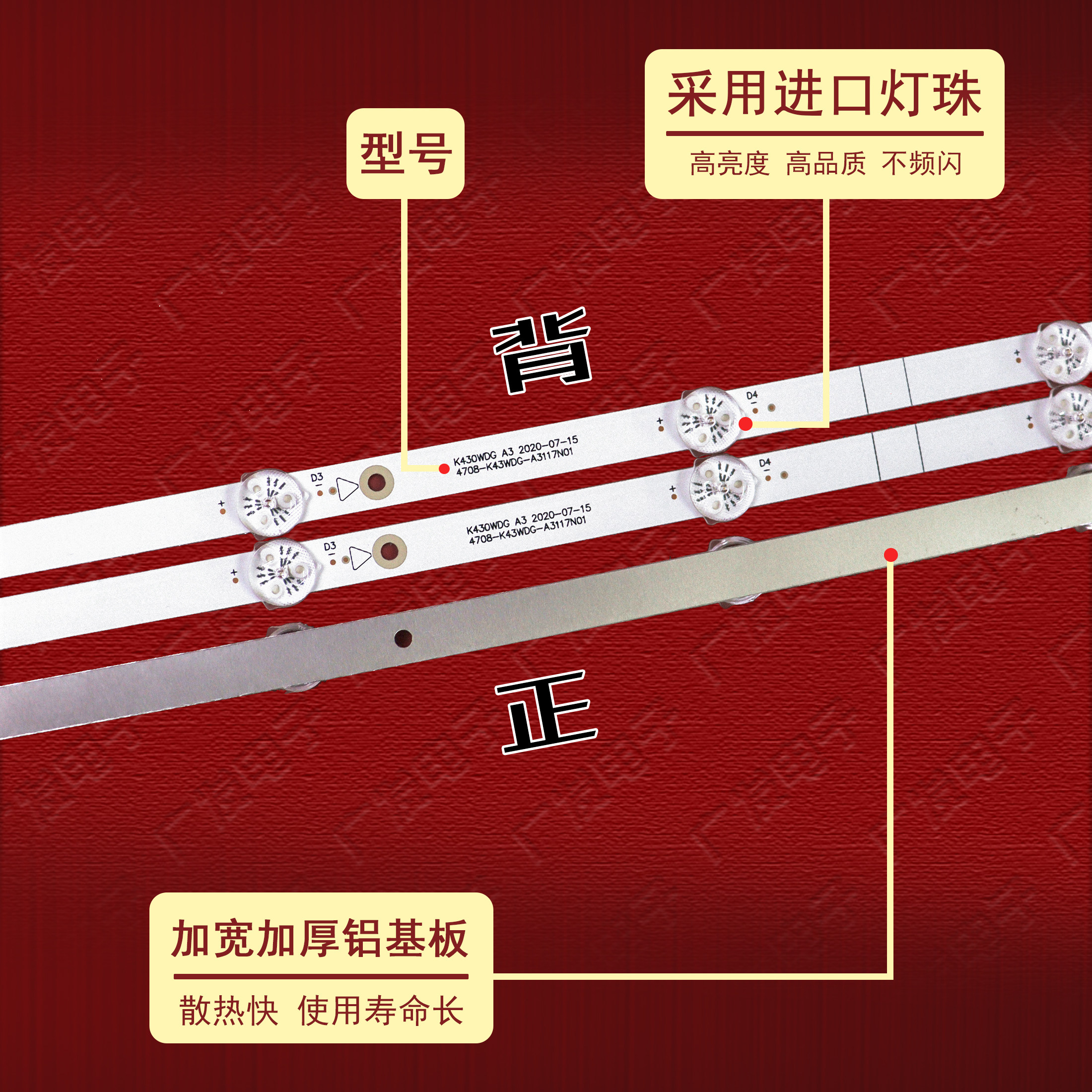 为您提供商品适用K430WDG K43WDG A3117N01背光灯8 灯3条电视机 A3灯条4708的详细介绍,