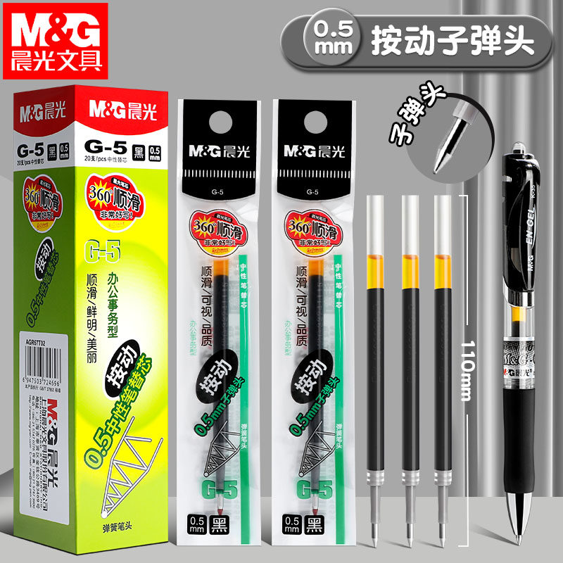 5畅销正品 k35文具黑色学习用品办公用品考试子弹头 笔芯学生用G 晨光按动笔芯按动中性笔芯0.5mm子弹头按压式由