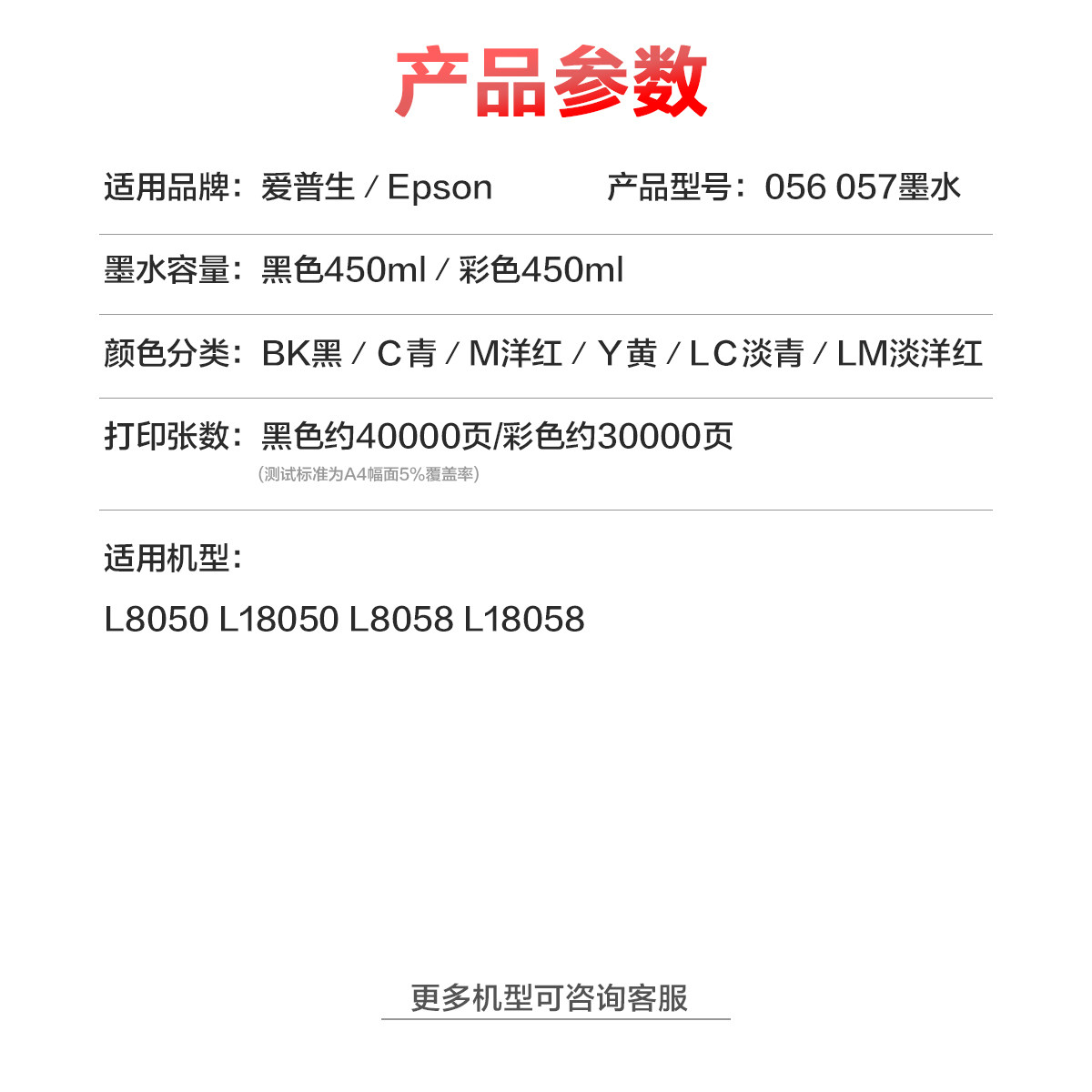 为您提供商品L3153 004专用墨 适用爱普生L8058 L3258 L5198 L11058打印机墨水大支大容量爱莎长宏056 L1258 L18058 L1118的详细介绍,