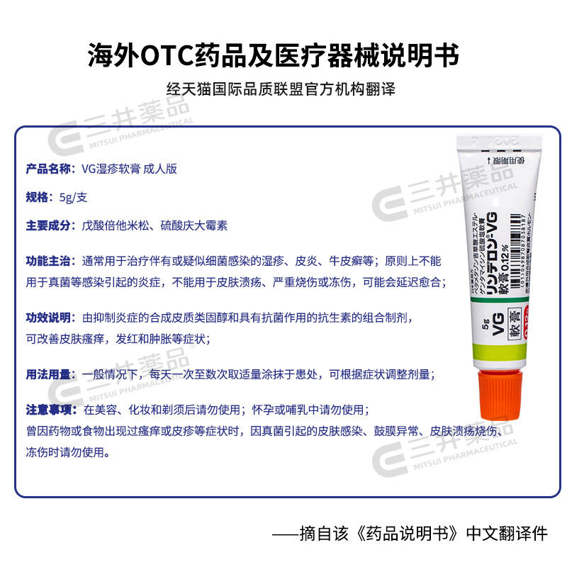 为您提供商品日本进口盐野义VG湿疹软膏儿童成人湿疹膏荨麻疹牛皮癣湿疹膏神器的详细介绍,