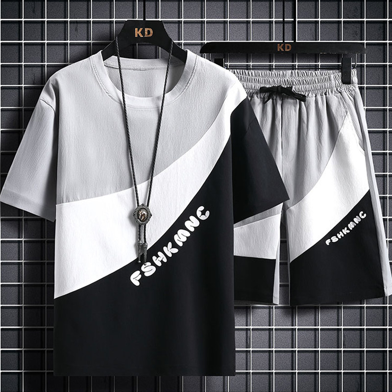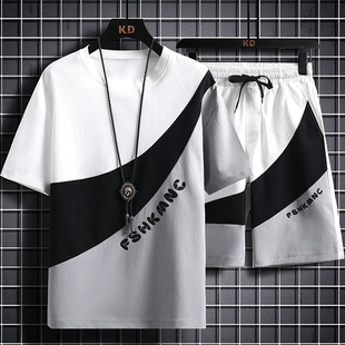 t恤短袖 夏季 休闲套装 男士 一套衣服学生帅气休闲冰丝运动服男 短裤由