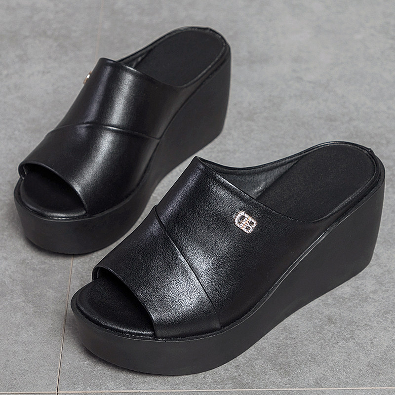 为您提供商品新款 坡跟女士高跟小个子鱼嘴凉拖 女夏外穿2026年夏季 真皮厚底拖鞋的详细介绍,