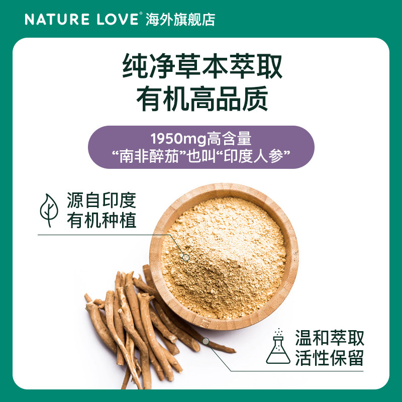 进口有机南非醉茄胶囊营养印度人参皮质醇焦虑 德国NatureLove原装由