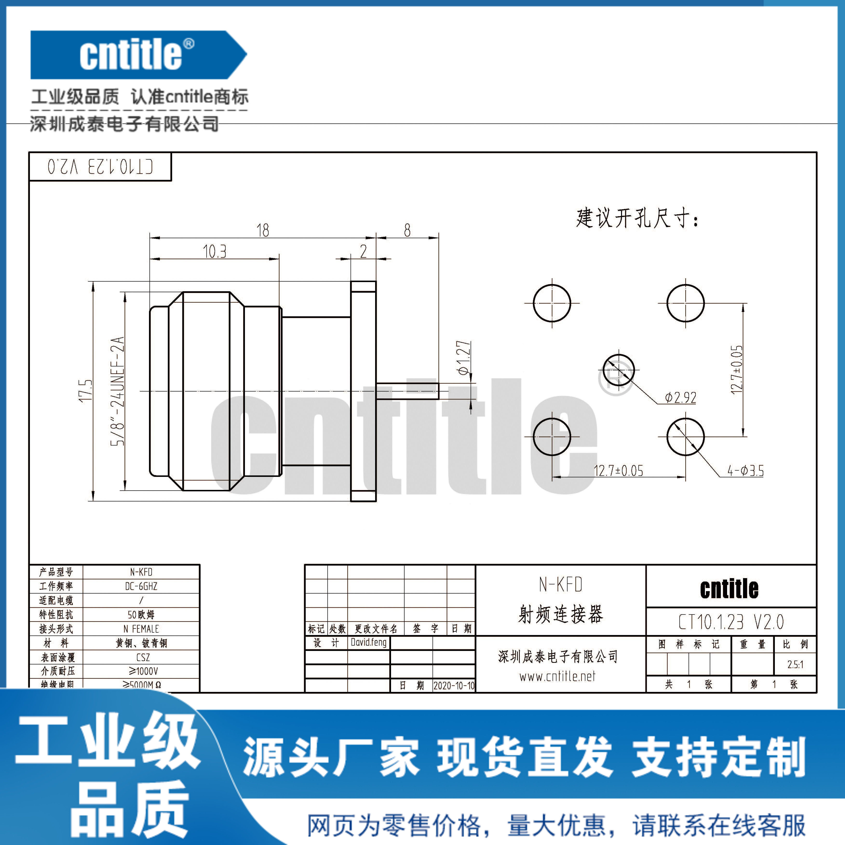 为您提供商品四孔法兰方板长针 面板穿墙PCB焊 KFD母座N型射频接头 全铜N母头N的详细介绍,