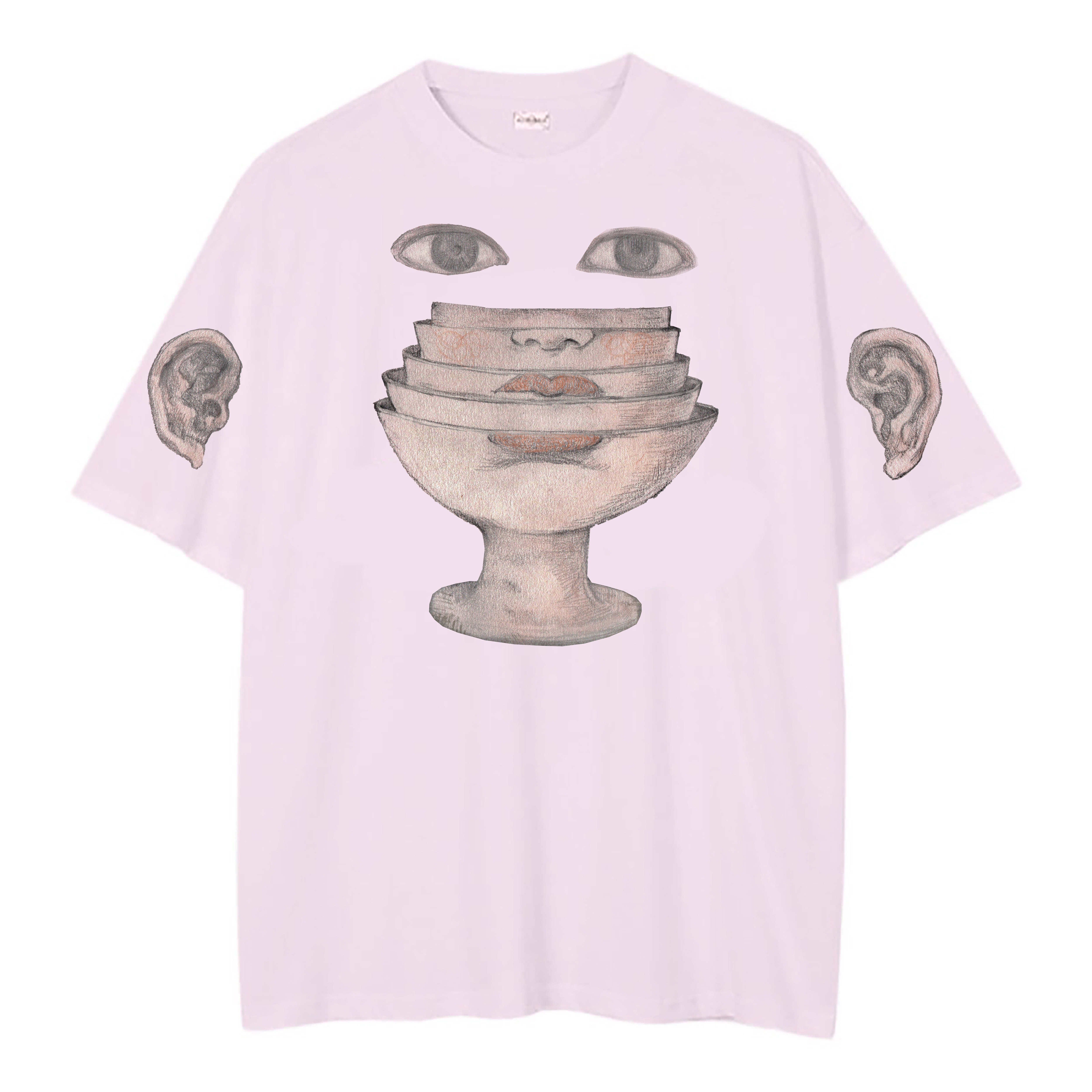 主题插画原创设计 五官印花落肩纯棉T恤圆领宽松短袖 sensation