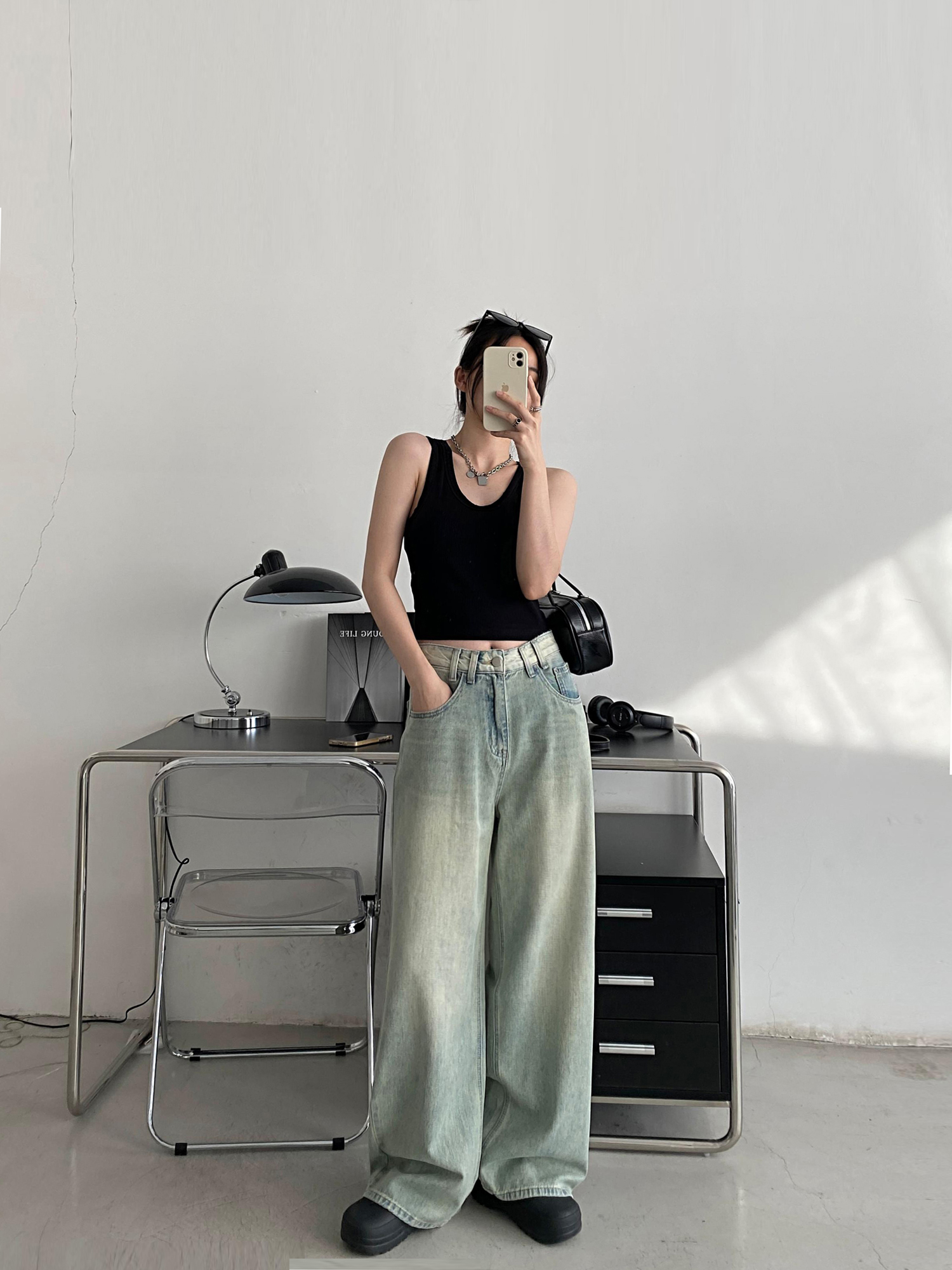 牛仔裤 清仓价 做旧阔腿裤 子显瘦高腰 女宽松小众直筒显瘦长裤
