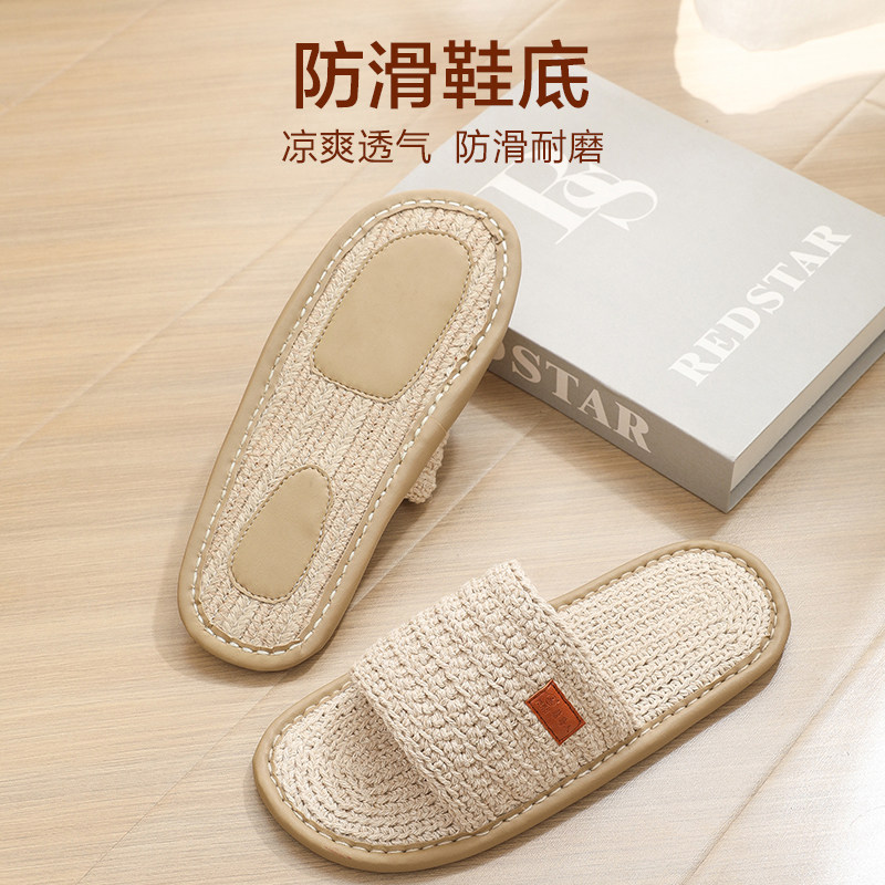 夏季 2025日式 复古亚麻特价 拖鞋 室内居家透气静音防滑 情侣家居新款