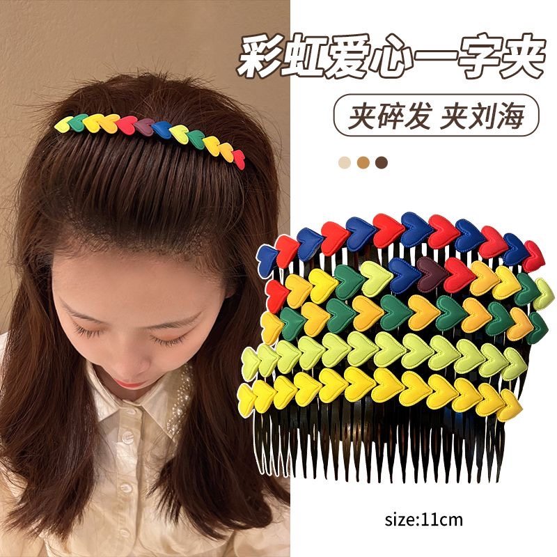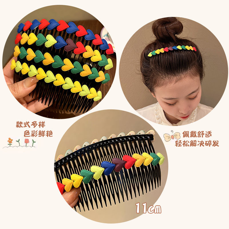 春夏彩色爱心发梳插梳女日系可爱刘海发夹后脑勺碎发整理神器发卡