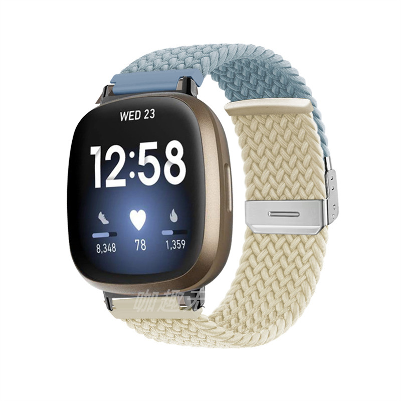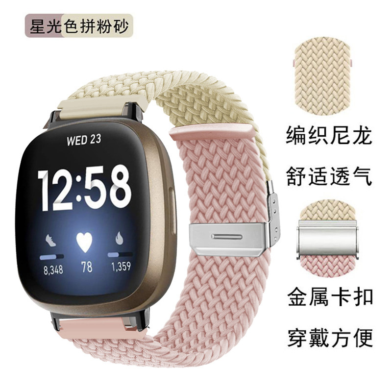 versa3 versa2 versa 男女透气替换配件 sense2智能手表表带潮流新款 弹力尼龙编织拼色腕带个性 适用fitbit由
