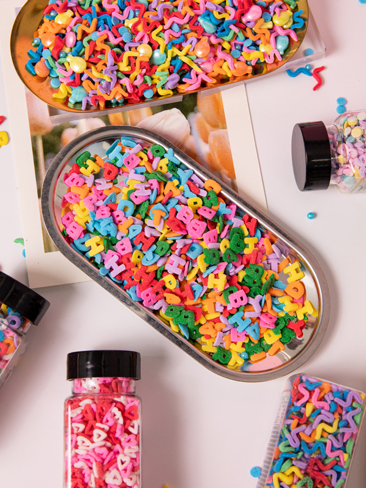 糖果幻彩糖珠蛋糕装 饰糖珠摆件 饰糖针马卡龙色彩色圈圈糖珍珠糖装