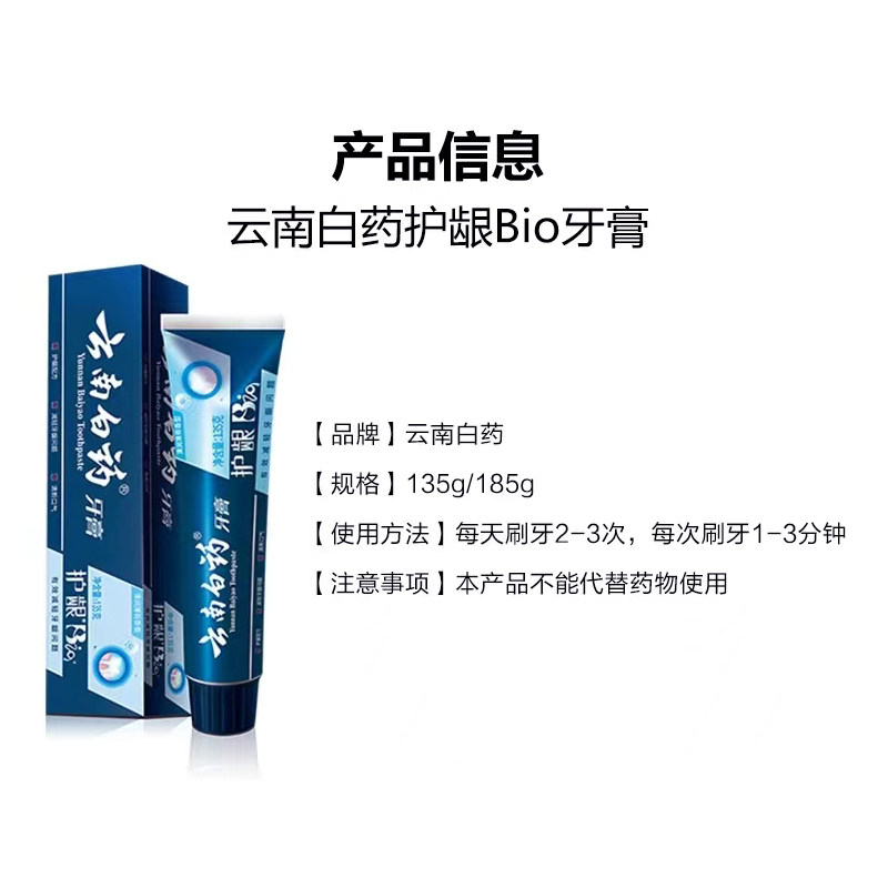 为您提供商品云南白药185g护龈Bio牙膏清新口气清洁口腔正品的详细介绍,
