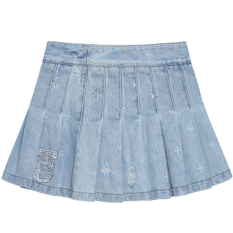 TCH潮牌牛仔短裙2025夏季 T69B228006 新女士半身裙百褶裙修身