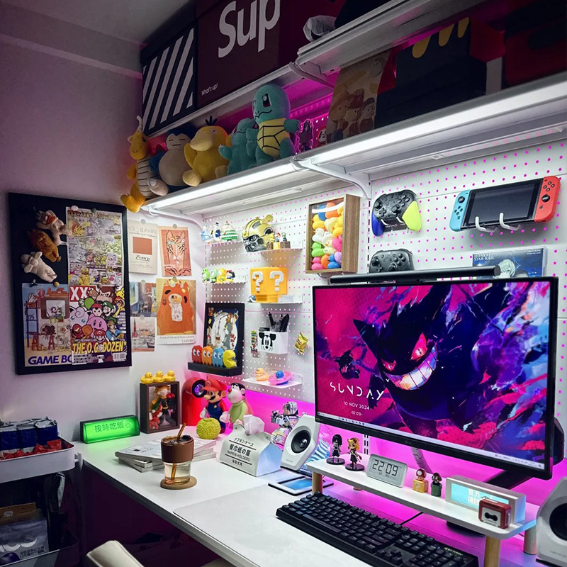 电动升降桌洞洞板台式 电脑桌书桌书架一体 小红书电竞桌 贫穷美学