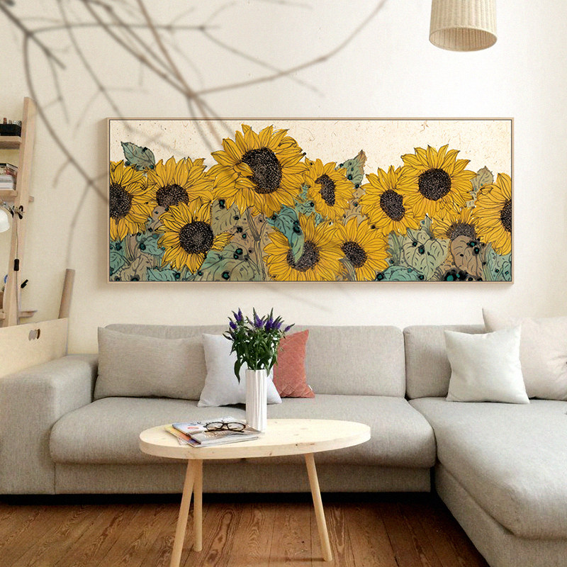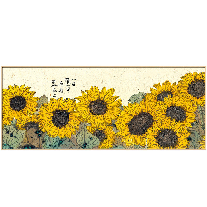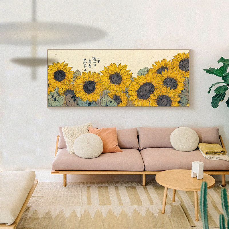 李知弥X仟象映画 客厅装 饰横版 挂画原木风向日葵艺术壁画 新中式由