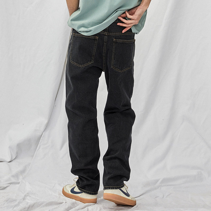 RETROMIND 黑灰色水洗丹宁牛仔裤 男宽松直筒百搭休闲长裤 21SS