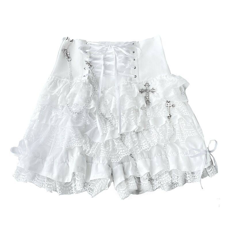 短裙春季 哥特朋克暗黑系链条蕾丝绑带百搭半身裙裤 血液供给原创