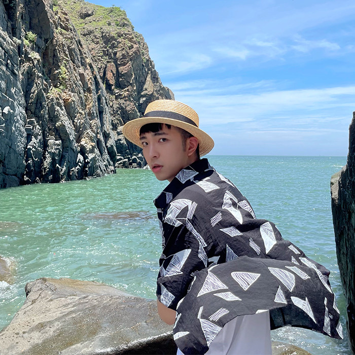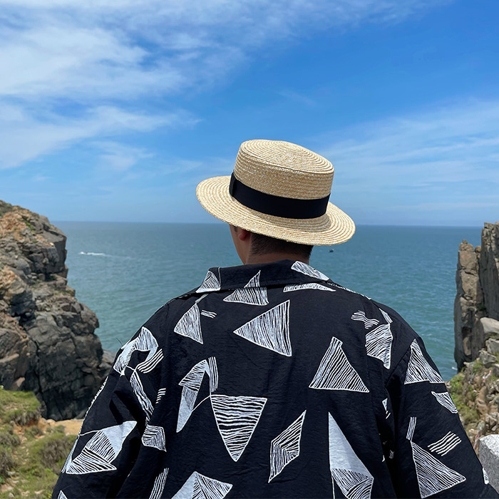 SUPERWZM夏天小清新麦秆平顶草帽男潮海边百搭遮阳英伦平沿礼帽女由
