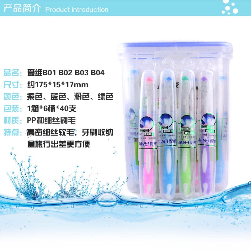 为您提供商品爱维B01 B03 B04便携旅行桶装 细丝竹炭软毛成人网红情侣牙刷 B02的详细介绍,
