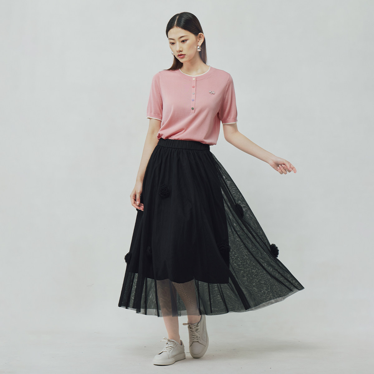 歌蒂诗夏季 时尚 减龄遮跨显瘦网纱半身裙 3F23Q3463 专柜新款由