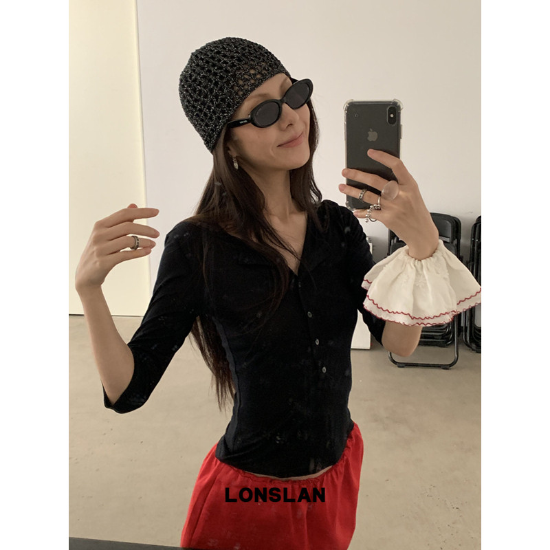 开襟系扣防晒条中袖 25SUMMER LONSLAN由