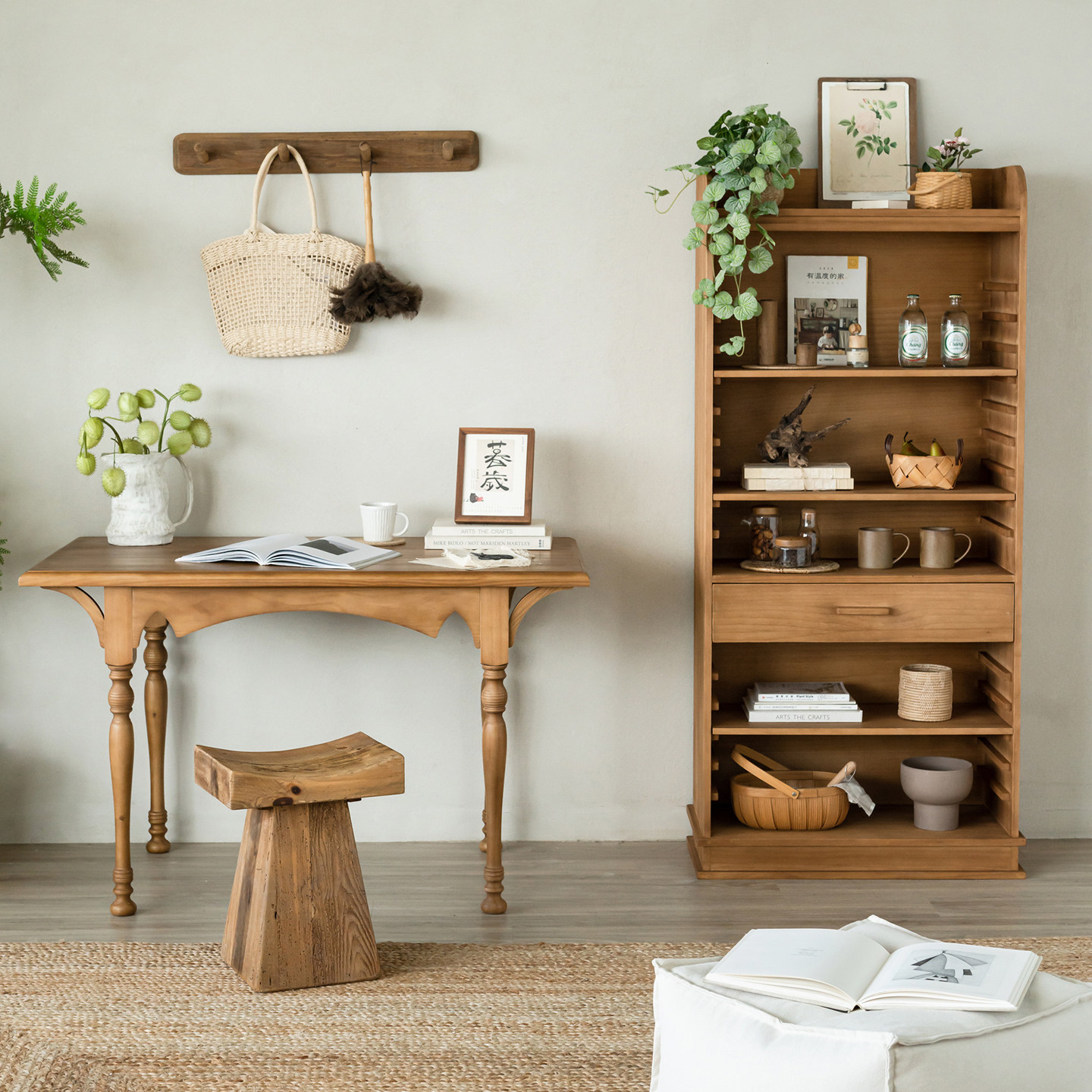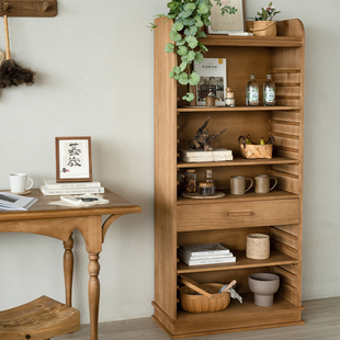原木手办柜单个书柜中古柜子 弄居侘寂风实木家用陈列柜日式